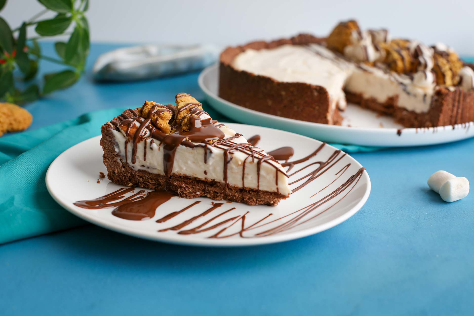 Top with broken up Gaia Tree Ginger Cookies, extra marshmallows and chocolate drizzle.